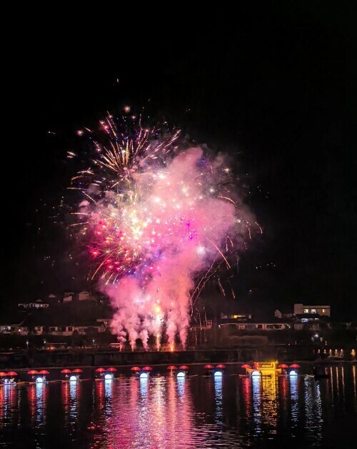 阿蓬江上,一场场非遗绝技轮番上演——江上婚俗表演还原土家族苗族传统婚嫁习俗,江面打铁花如流星雨般洒落夜空,引得阵阵惊呼。当璀璨烟花在江面上空绽放,整个濯水古镇被点亮,车友们仰头凝望,将这份属于中国年的浪漫刻进记忆深处。